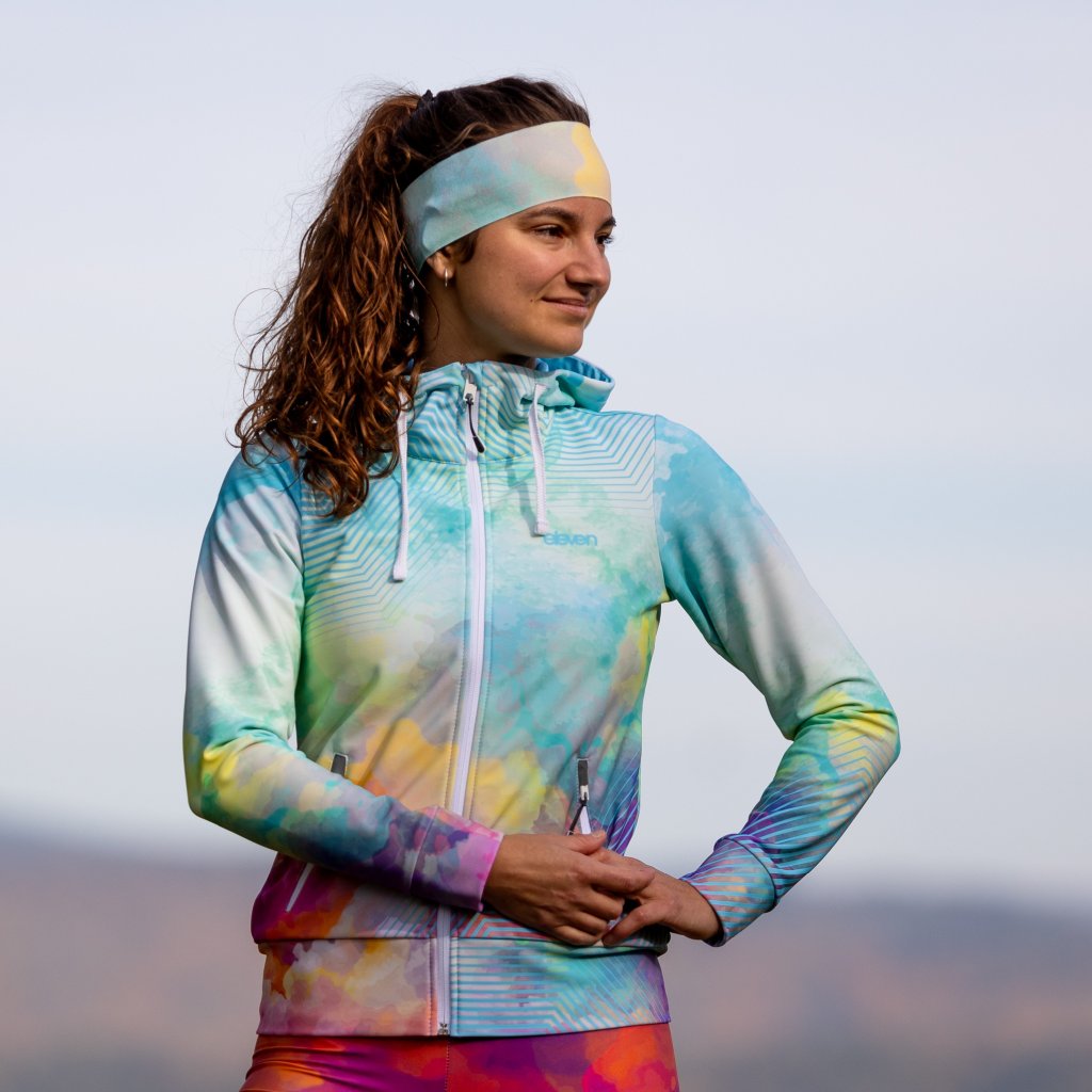 Der Hoodie hat zwei Reißverschlusstaschen und eine Kapuze mit Kordelzug. Die Ärmel und der untere Rand sind mit einer breiteren Manschette versehen, die für Komfort und einen stilvollen Look sorgt. Reflektierende Elemente auf der linken Seite und an den Taschen erhöhen Ihre Sichtbarkeit und Sicherheit bei schlechten Lichtverhältnissen. Sweatshirt eignet sich als warme Schicht nach dem Sport oder als Freizeitkleidung.
