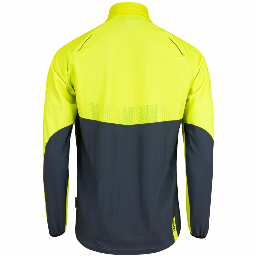 This sports jacket is ideal for activities such as running and cross-country skiing. The jacket is made from the same materials used in the production of the popular cycling jacket. It reliably wicks away excess heat and provides light warmth when needed. The front panel and sleeves have a membrane, while the back panel and sleeves are made of flexible and breathable fleece. The jacket features a zippered chest pocket. For added safety, reflective elements are used.