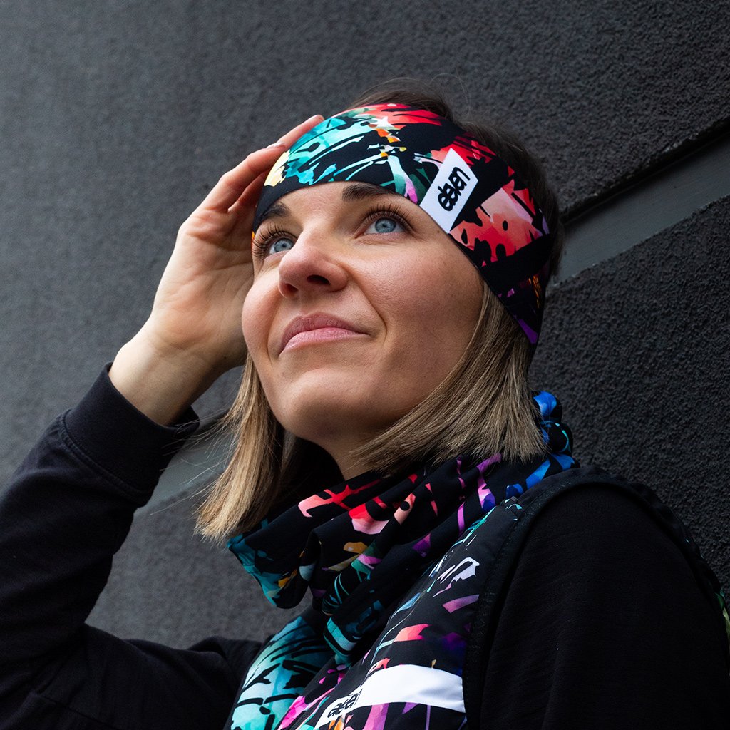 Sportovní čelenka vyrobená z funkčního materiálu, který odvádí vlhkost a udržuje optimální teplotu.