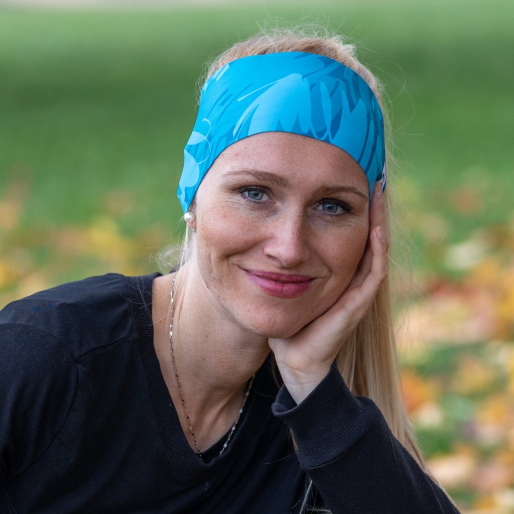 Sportovní čelenka vyrobená z funkčního materiálu, který odvádí vlhkost a udržuje optimální teplotu.